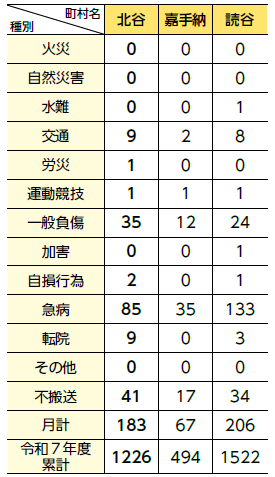 災害(火災・救助・風水害)はすべて発生件数の報告とする。報告件数は北谷町内のみの件数である。