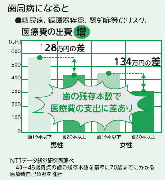 歯の数が少ないほど、医療費の出費が増えるとのデータがあります!自覚症状がない方も是非、定期的に歯科健診の受診をされてみてはいかがでしょうか。