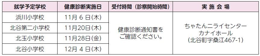 ◆北谷町就学時健康診断日程