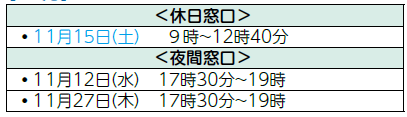 ※平日昼間の受付時間は9時~11時40分、13時~17時です。