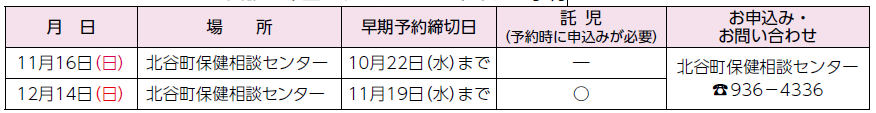 お問い合わせ:保健衛生課 健康係(北谷町保健相談センター)