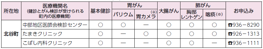 ※上表以外の実施医療機関については、受診券と同封しております「けんしんガイドブック」をご覧ください。