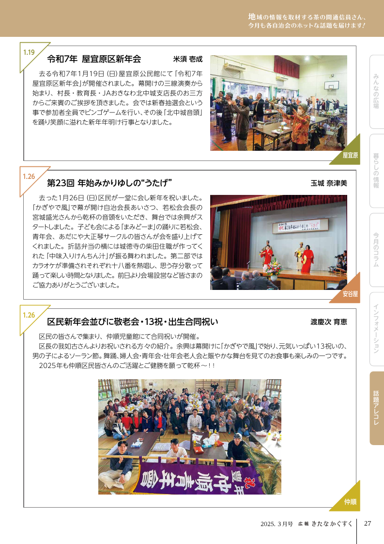 イベント 広報きたなかぐすく 2025年3月号 P.27 27/28 前の記事 次の記事 発行日 : 2025年02月25日 自治体名 : 沖縄県北中城村 広報紙名 : 広報きたなかぐすく 2025年3月号 Tweet シェアする 広報きたなかぐすく 2025年3月号 P.26 広報きたなかぐすく 2025年3月号 P.28