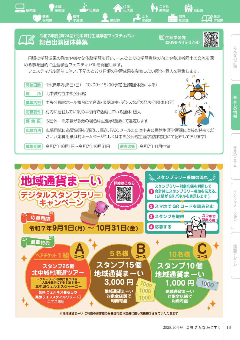 くらし 広報きたなかぐすく 2025年10月号 P.13 13/28 前の記事 次の記事 発行日 : 2025年09月25日 自治体名 : 沖縄県北中城村 広報紙名 : 広報きたなかぐすく 2025年10月号 Tweet シェアする 広報きたなかぐすく 2025年10月号 P.12 広報きたなかぐすく 2025年10月号 P.14