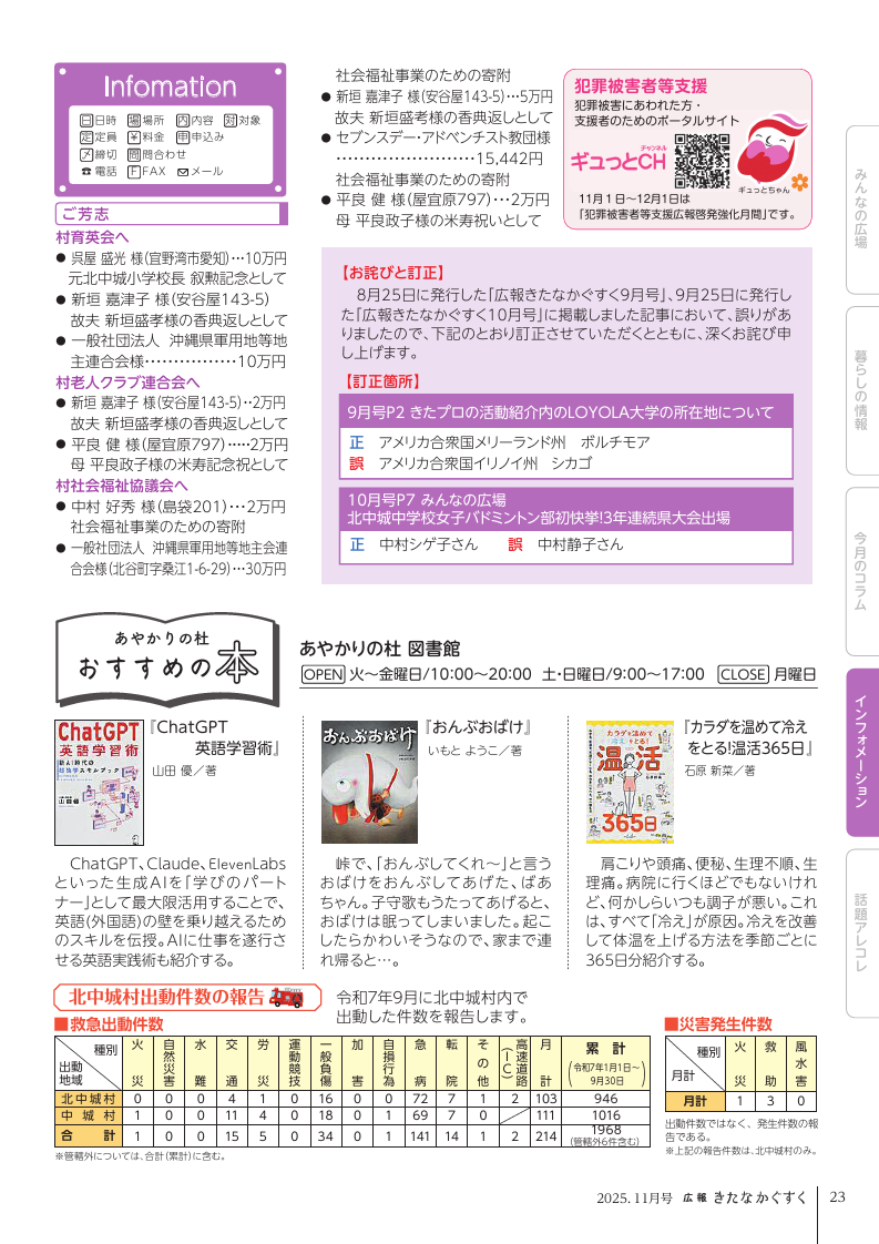 文化 広報きたなかぐすく 2025年11月号 P.23 23/28 前の記事 次の記事 発行日 : 2025年10月25日 自治体名 : 沖縄県北中城村 広報紙名 : 広報きたなかぐすく 2025年11月号 Tweet シェアする 広報きたなかぐすく 2025年11月号 P.22 広報きたなかぐすく 2025年11月号 P.24