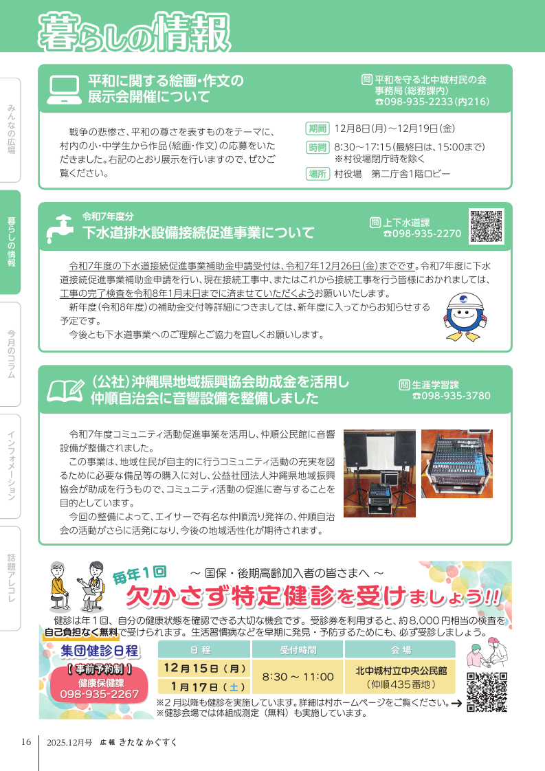 くらし 広報きたなかぐすく 2025年12月号 P.16 16/32 前の記事 次の記事 発行日 : 2025年11月25日 自治体名 : 沖縄県北中城村 広報紙名 : 広報きたなかぐすく 2025年12月号 Tweet シェアする 広報きたなかぐすく 2025年12月号 P.15 広報きたなかぐすく 2025年12月号 P.17