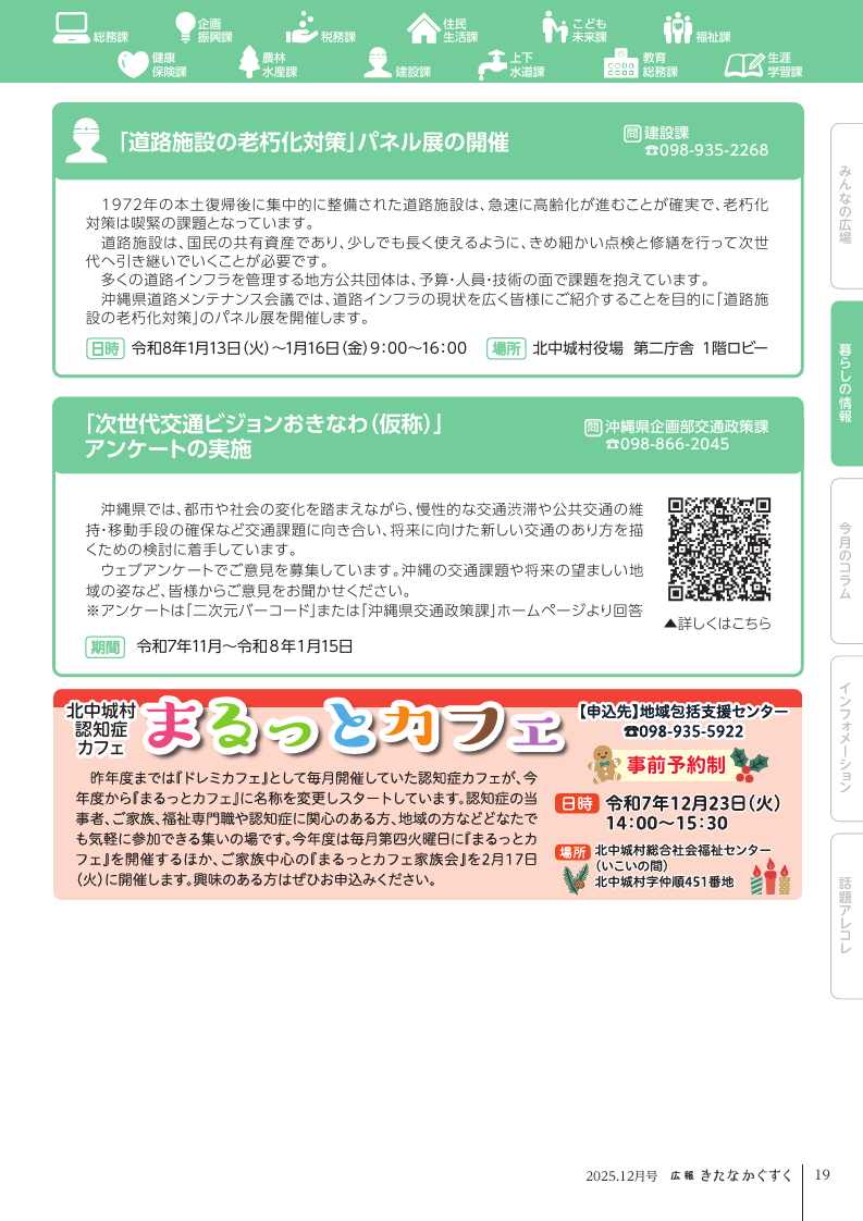 くらし 広報きたなかぐすく 2025年12月号 P.19 19/32 前の記事 次の記事 発行日 : 2025年11月25日 自治体名 : 沖縄県北中城村 広報紙名 : 広報きたなかぐすく 2025年12月号 Tweet シェアする 広報きたなかぐすく 2025年12月号 P.18 広報きたなかぐすく 2025年12月号 P.20