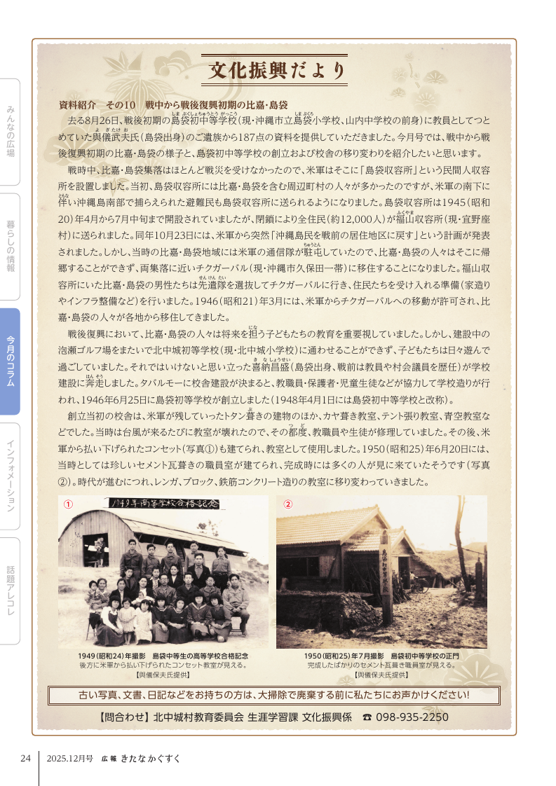 文化 広報きたなかぐすく 2025年12月号 P.24 24/32 前の記事 次の記事 発行日 : 2025年11月25日 自治体名 : 沖縄県北中城村 広報紙名 : 広報きたなかぐすく 2025年12月号 Tweet シェアする 広報きたなかぐすく 2025年12月号 P.23 広報きたなかぐすく 2025年12月号 P.25