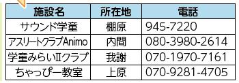 ・こちらの放課後児童クラブの申込時期、内容等につきましては、直接学童クラブにてご確認をお願いします。