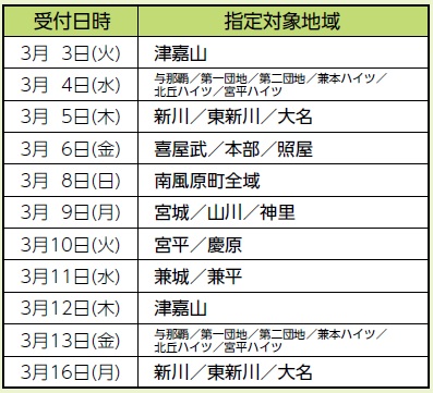 ※土日・祝日除く。3月8日(日)のみ午前中実施。