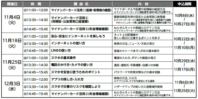大変ご好評をいただき、一部の講座はすでに満席となっております。タイミングによっては他の講座も満席となる場合がありますので、あらかじめご了承ください。
