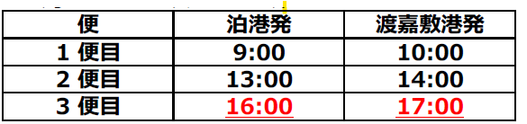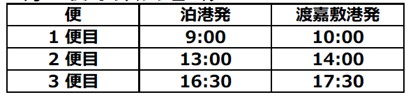 *詳細につきましては、渡嘉敷村ホームページの「運航予定表」にて随時の御確認を宜しくお願いします。