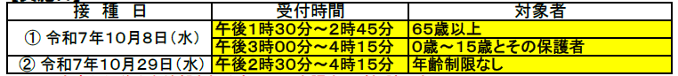 インフルエンザ予防接種(集団接種)を下記の日程で実施いたします。