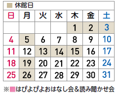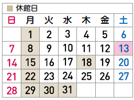 開館日・イベント等の開催内容を変更する場合があります。ご了承ください。