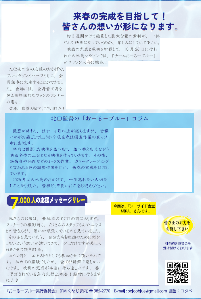 その他 映画おーるーブルー 制作応援プロジェクト 28/29 前の記事 次の記事 発行日 : 2025年12月01日 自治体名 : 沖縄県久米島町 広報紙名 : 広報くめじま 2025年12月号 Tweet シェアする お知らせ Kume Info その他のお知らせ(広報くめじま 2025年12月号)