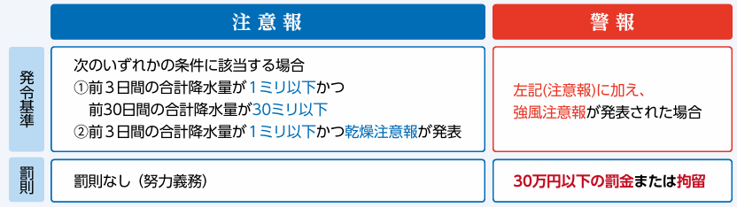 ◇林野火災注意報・警報が発表されると、火の使用制限がかかります