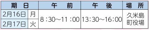 ・具志川改善センターで申告相談所を開設する期間は、職員が出向いて対応しますので、仲里庁舎での申告は出来かねますのでご了承ください。