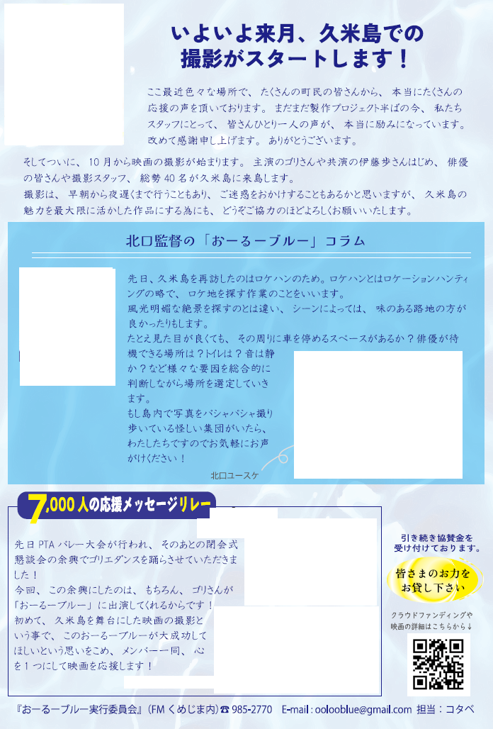 その他 映画おーるーブルー 制作応援プロジェクト 5/18 前の記事 次の記事 発行日 : 2025年09月01日 自治体名 : 沖縄県久米島町 広報紙名 : 広報くめじま 2025年9月号 Tweet シェアする 〔くめスポ〕熱戦続く!全島角力大会 久米島高校 魅力化プロジェクト