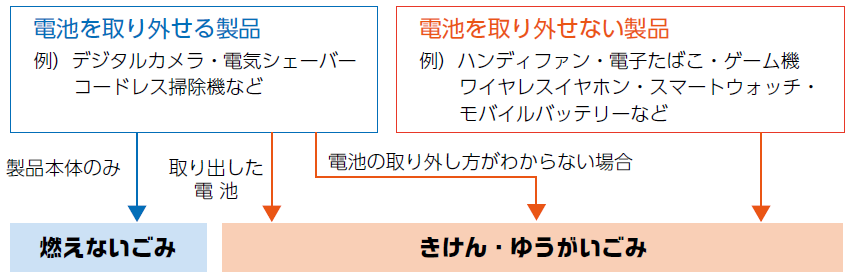 電池使用製品には表示がなくても「充電できる製品」や「電源につながなくても動く・光るなどする製品」には、リチウムイオン電池が使用されている可能性があります。
