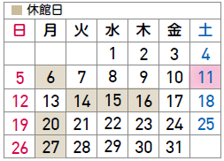 ※開館日・イベント等の開催内容を変更する場合があります。ご了承ください。