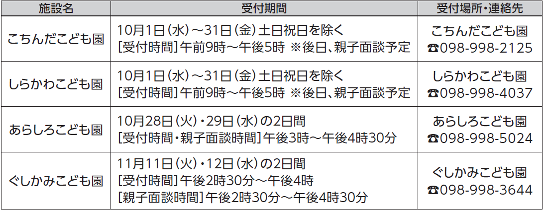 ・認可保育園:0歳児~5歳児(令和2年4月2日~令和7年9月30日生まれ)