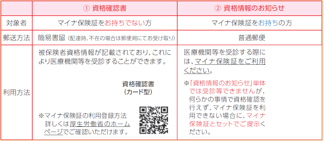 「資格確認書」・「資格情報のお知らせ」をお送りいたします!