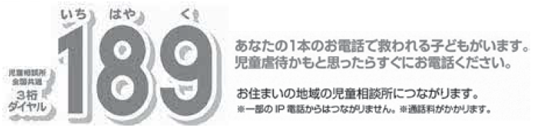 通告(連絡)は法律で定められた義務です。このような児童虐待に気づいたら、児童家庭課又は児童相談所へご連絡ください。連絡は匿名でもかまいません。