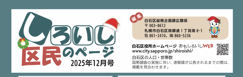 広報さっぽろ 白石区 2025年12月号 自治体 北海道札幌市白石区 発行日 2025年12月01日 PDF版を見る 全域版の最新号を見る バックナンバー 選択してください 広報さっぽろ 白石区 2025年11月号 広報さっぽろ 白石区 2025年10月号 広報さっぽろ 白石区 2025年9月号 広報さっぽろ 白石区 2025年8月号 広報さっぽろ 白石区 2025年7月号 広報さっぽろ 白石区 2025年6月号 広報さっぽろ 白石区 2025年5月号 広報さっぽろ 白石区 2025年4月号 広報さっぽろ 白石区 2025年3月号 広報さっぽろ 白石区 2025年2月号 広報さっぽろ 白石区 2025年1月号 広報さっぽろ 白石区 2024年12月号 表示 全号から検索 検索 発行号の内容 記事を絞り込む 全てのカテゴリ 子育て 健康 くらし スポーツ イベント 文化 しごと 講座 その他 表示 その他 広報さっぽろ 白石区 2025年12月号 表紙 その他 広報さっぽろ 白石区 2025年12月号 P.2 その他 広報さっぽろ 白石区 2025年12月号 P.3 その他 広報さっぽろ 白石区 2025年12月号 P.4 その他 広報さっぽろ 白石区 2025年12月号 P.5 その他 広報さっぽろ 白石区 2025年12月号 P.6