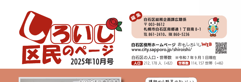 広報さっぽろ 白石区 2025年10月号 自治体 北海道札幌市白石区 発行日 2025年10月01日 PDF版を見る 全域版の最新号を見る バックナンバー 選択してください 広報さっぽろ 白石区 2025年9月号 広報さっぽろ 白石区 2025年8月号 広報さっぽろ 白石区 2025年7月号 広報さっぽろ 白石区 2025年6月号 広報さっぽろ 白石区 2025年5月号 広報さっぽろ 白石区 2025年4月号 広報さっぽろ 白石区 2025年3月号 広報さっぽろ 白石区 2025年2月号 広報さっぽろ 白石区 2025年1月号 広報さっぽろ 白石区 2024年12月号 広報さっぽろ 白石区 2024年11月号 広報さっぽろ 白石区 2024年10月号 表示 全号から検索 検索 発行号の内容 記事を絞り込む 全てのカテゴリ 子育て 健康 くらし スポーツ イベント 文化 しごと 講座 その他 表示 くらし 広報さっぽろ 白石区 2025年10月号 表紙 その他 広報さっぽろ 白石区 2025年10月号 P.2 その他 広報さっぽろ 白石区 2025年10月号 P.3 その他 広報さっぽろ 白石区 2025年10月号 P.4 その他 広報さっぽろ 白石区 2025年10月号 P.5 その他 広報さっぽろ 白石区 2025年10月号 P.6