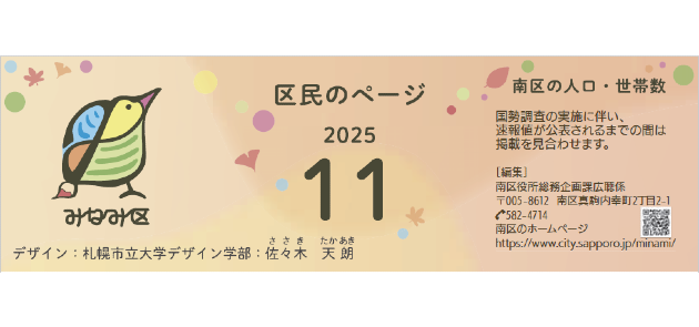 広報さっぽろ 南区 2025年11月号 自治体 北海道札幌市南区 発行日 2025年11月01日 PDF版を見る 全域版の最新号を見る バックナンバー 選択してください 広報さっぽろ 南区 2025年10月号 広報さっぽろ 南区 2025年9月号 広報さっぽろ 南区 2025年8月号 広報さっぽろ 南区 2025年7月号 広報さっぽろ 南区 2025年6月号 広報さっぽろ 南区 2025年5月号 広報さっぽろ 南区 2025年4月号 広報さっぽろ 南区 2025年3月号 広報さっぽろ 南区 2025年2月号 広報さっぽろ 南区 2025年1月号 広報さっぽろ 南区 2024年12月号 広報さっぽろ 南区 2024年11月号 表示 全号から検索 検索 発行号の内容 記事を絞り込む 全てのカテゴリ 子育て 健康 くらし スポーツ イベント 文化 しごと 講座 その他 表示 くらし 広報さっぽろ 南区 2025年11月号 表紙 くらし 広報さっぽろ 南区 2025年11月号 P.2 くらし 広報さっぽろ 南区 2025年11月号 P.3 講座 広報さっぽろ 南区 2025年11月号 P.4 健康 広報さっぽろ 南区 2025年11月号 P.5 講座 広報さっぽろ 南区 2025年11月号 P.6