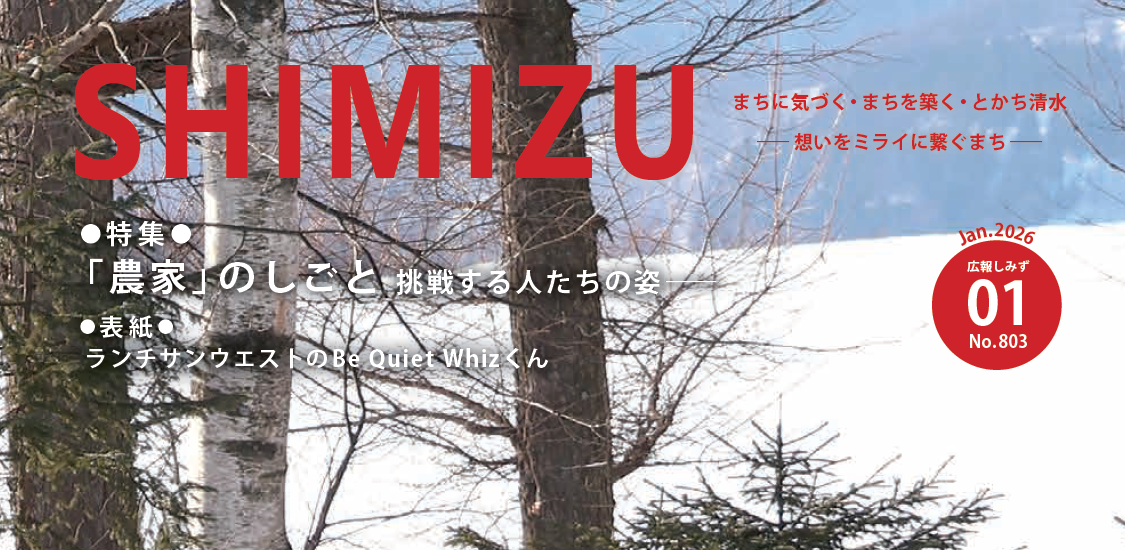 その他のお知らせ(広報Shimizu 2026年1月号) ■『HELLO BABY』では、6カ月から2歳くらいの赤ちゃんを募集しています。掲載を希望される人は企画課広報広聴係(【電話】62・2114)までご連絡いただくか、げんきひろばでお声がけください。 ■表紙 ランチサンウエストのBe Quiet Whizくん ■広報しみず No.803 発行:北海道清水町 〒089-0192 北海道上川郡清水町南4条2丁目2番地 (代表)【電話】0156・62・21...