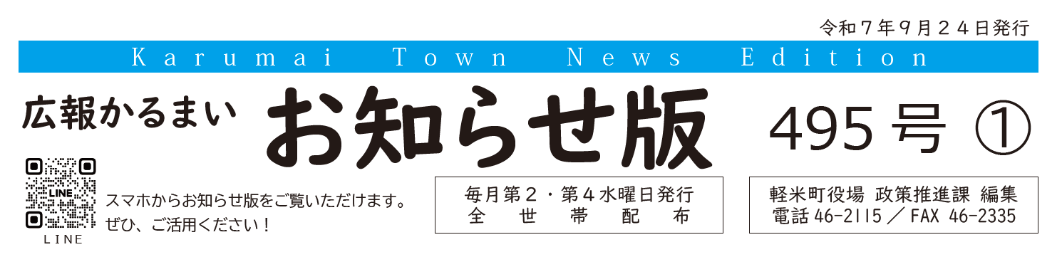 広報かるまい お知らせ版 495号 (令和7年9月24日発行)