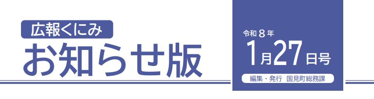 その他のお知らせ(広報くにみ お知らせ版 令和8年1月27日号) ■広報くにみお知らせ版 令和8年1月27日号 編集・発行:国見町総務課