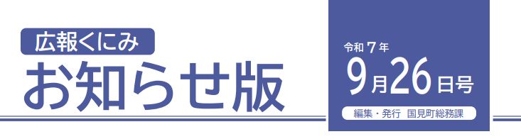 その他のお知らせ(広報くにみ お知らせ版 令和7年9月26日号) ■広報くにみお知らせ版 令和7年9月26日号 編集・発行:国見町総務課
