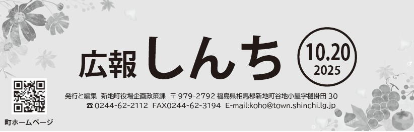 その他のお知らせ (広報しんち 令和7年10月20日号) ■広報しんち R7.10.20 発行と編集:新地町役場企画政策課 〒979-2792 福島県相馬郡新地町谷地小屋字樋掛田30 【電話】0244-62-2112【FAX】0244-62-3194【E-mail】[email protected]