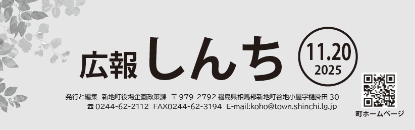 その他のお知らせ (広報しんち 令和7年11月20日号) ■広報しんち R7.11.20 発行と編集:新地町役場企画政策課 〒979-2792 福島県相馬郡新地町谷地小屋字樋掛田30 【電話】0244-62-2112【FAX】0244-62-3194【E-mail】[email protected]