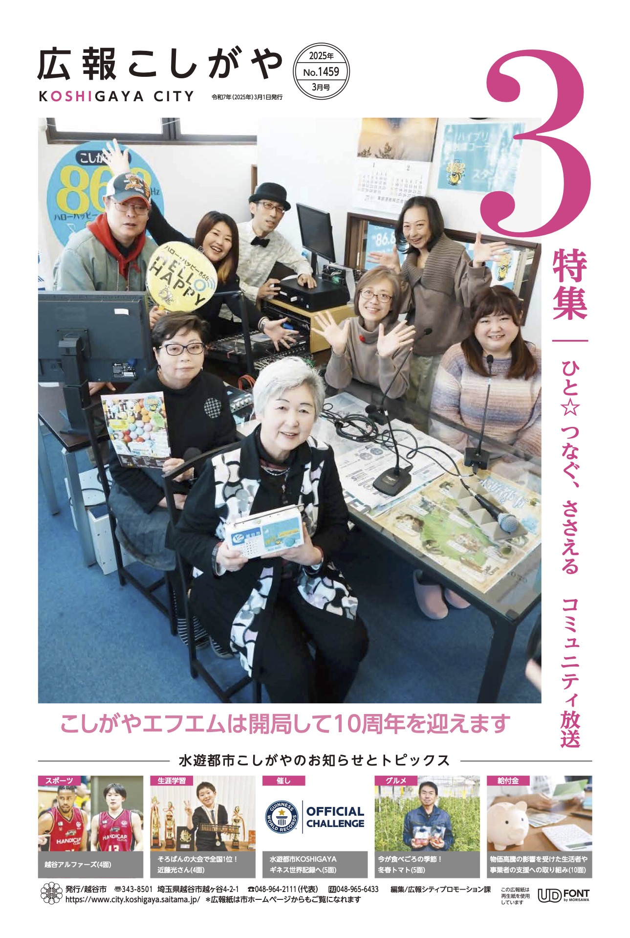 特集 こしがやエフエムは開局して10周年を迎えます(1) ■特集 ひと☆つなぐ、ささえる コミュニティ放送 こしがやエフエムは開局して10周年を迎えます ▼ひと☆つなぐ、ささえるコミュニティ放送 こしがやエフエム インタビュー ○ハロー・ハッピー868 HELLO HAPPY こしがやエフエム FM86.8MHz 越谷・草加・八潮三郷・吉川・松伏エリア 開局以来「ひと☆つなぐ、ささえる」を大切にし、市民をつないできた、コミュニティFM放送局「こしがやエフ...