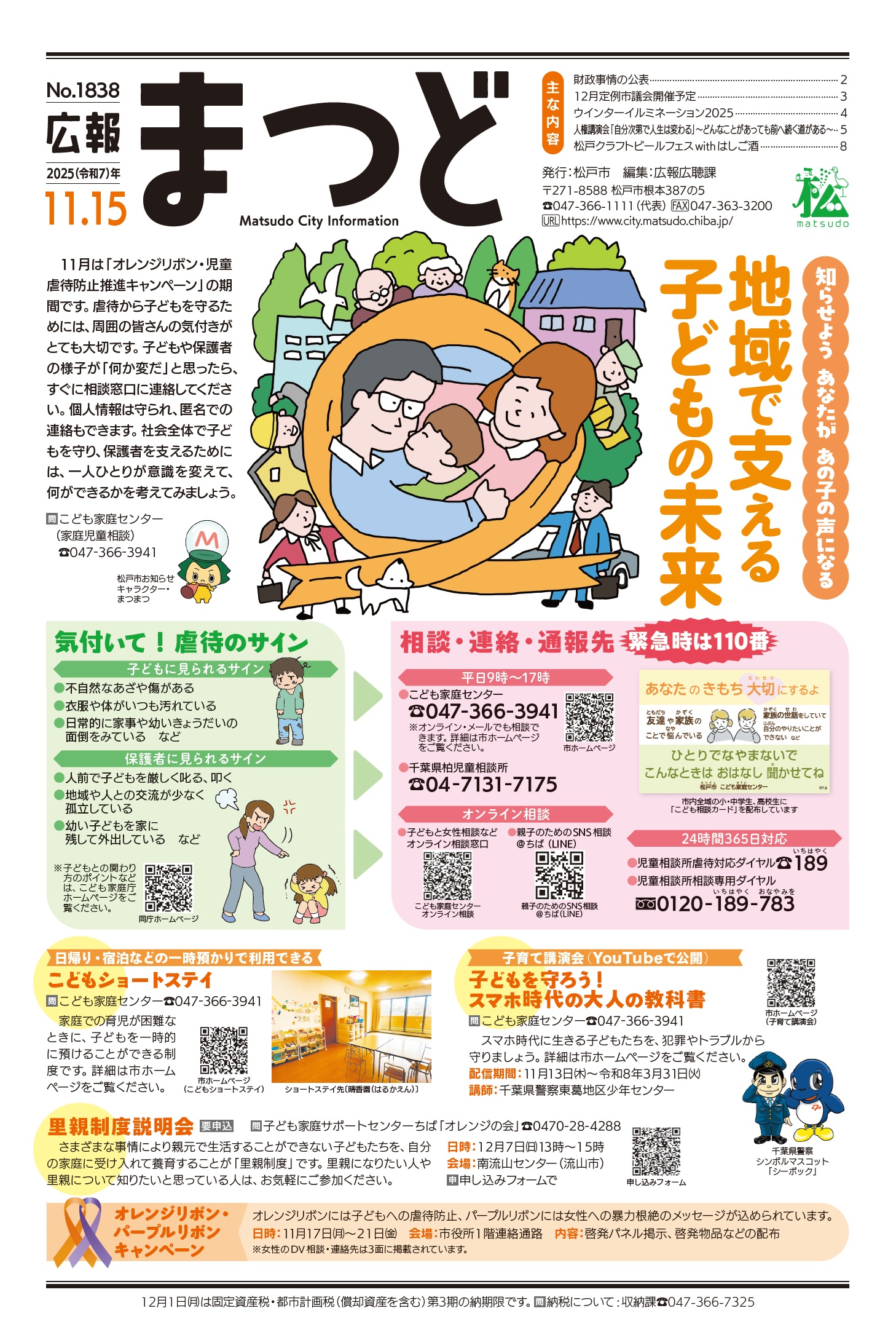 募集しています ※松戸市の市外局番047を省略しています。 ■松戸市子ども夢フォーラム 表彰対象者を募集 対象:R6/12/1~R7/11/30の間に、スポーツやコンクールなどで規定の成績をおさめた、市内在住の小・中学生(個人またはチーム) ※チームの場合、市内在住者のみ対象。詳細は市ホームページで 申込み:12/8(月)までに、市ホームページ掲載の松戸市オンライン申請システムで 問合せ:子ども政策課 【電話】7...