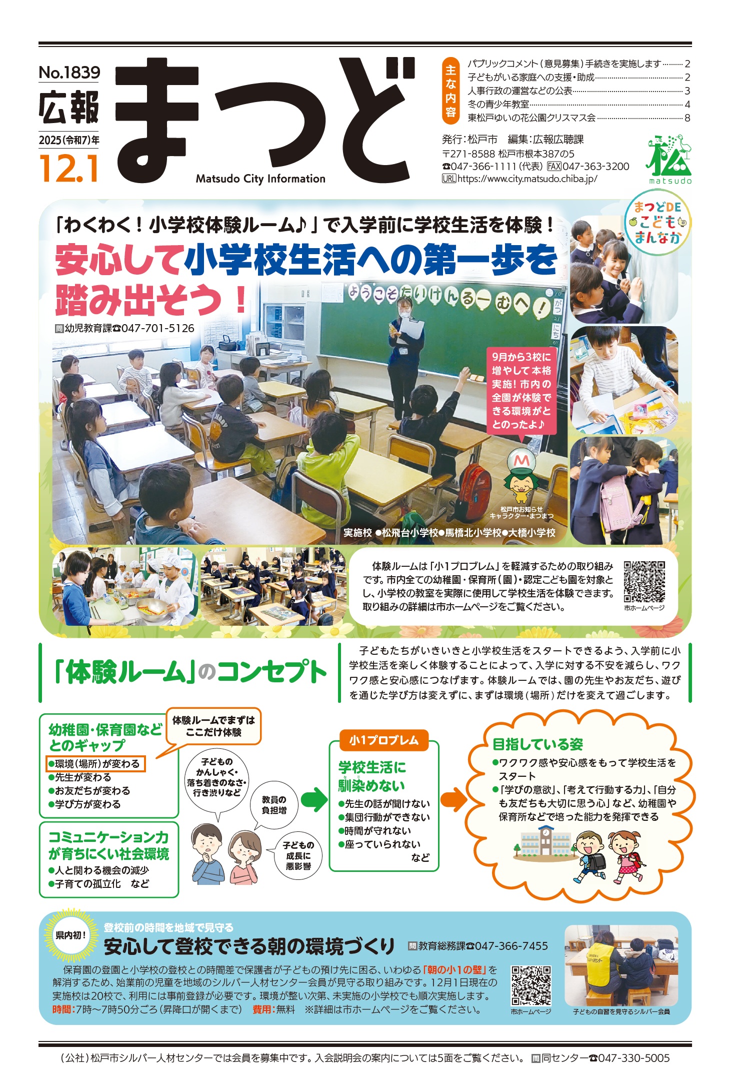 市からのお知らせ(2) ※松戸市の市外局番047を省略しています。 ■「松戸市子育てガイドブック」に広告を掲載しませんか 配布予定時期:R8年3月 配布予定部数:13,700部 配布先:市役所窓口、子育て関連施設など 仕様:A5サイズ、フルカラー 問合せ: ・広告について…(株)サイネックス千葉支店【電話】043-238-8280 ・掲載情報について…子ども政策課【電話】704-4007 ■12/10(水)~19(金)は...