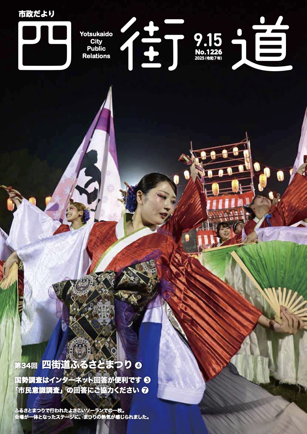 その他のお知らせ(市政だより四街道 令和7年9月15日号) ふるさとまつりで行われたよさこいソーランでの一枚。 会場が一体となったステージに、まつりの熱気が感じられました。 市ホームページは検索またはこちらから ※詳しくは本紙をご覧ください。 四街道市 四街道市の市外局番は全て“【電話️】043”です 市政だより四街道 Yotsukaido City Public Relations 9.15 No.1225 2025(令和7年) 発行/四街道市役所(毎月...