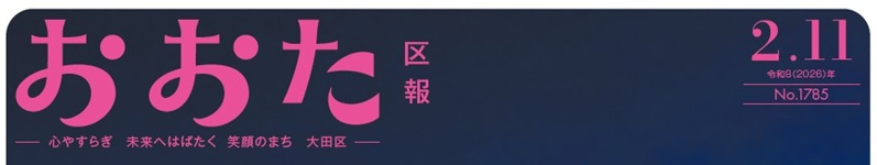 その他のお知らせ(おおた区報 令和8年2月11日号) ■費用が記入されていない催しなどは原則無料です ■はがきやFAXなどで申し込む場合の記入例 (1)催しなどの名称 (2)〒住所 (3)氏名(ふりがな) (4)年齢(学年) (5)電話番号 (6)その他必要事項 ■次号の区報は ◇2月21日号 特集:DXで進化する図書館へ ■1日号は全戸配布、11日号・21日号は新聞折込と配送サービス(外出困難などの要件有り)で配布。全号で駅広報スタンド、区施設、公...