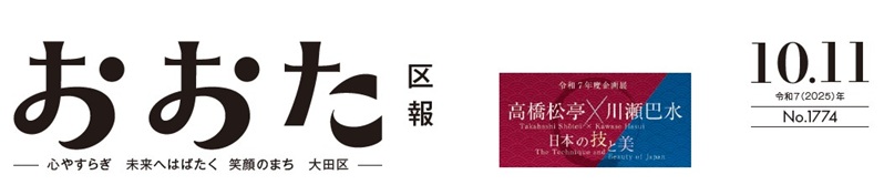 その他のお知らせ(おおた区報 令和7年10月11日号) ■費用が記入されていない催しなどは原則無料です ■はがきやFAXなどで申し込む場合の記入例 (1)催しなどの名称 (2)〒住所 (3)氏名(ふりがな) (4)年齢(学年) (5)電話番号 (6)その他必要事項 ■次号の区報は ◇10月21日号 特集:OTAふれあいフェスタ ■1日号は全戸配布、11日号・21日号は新聞折込と配送サービス(外出困難などの要件有り)で配布。全号で駅広報スタンド、区施設、...
