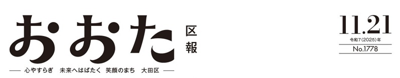 その他のお知らせ(おおた区報 令和7年11月21日号) ■費用が記入されていない催しなどは原則無料です ■はがきやFAXなどで申し込む場合の記入例 (1)催しなどの名称 (2)〒住所 (3)氏名(ふりがな) (4)年齢(学年) (5)電話番号 (6)その他必要事項 ■次号の区報は ◇12月1日号 特集:まちを支える、未来をつくる。 ■1日号は全戸配布、11日号・21日号は新聞折込と配送サービス(外出困難などの要件有り)で配布。全号で駅広報スタンド、区施...
