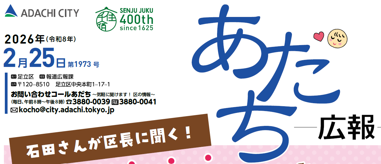 審議会等の公開(3月分) 日時など、変更になる場合があります。傍聴方法や定員など、くわしくは区のホームページをご覧になるか、お問い合わせください。 審議会等:足立区学校開放事業審議会 日程:12日(木) 時間:午後2時から4時 場所:区役所・6階 問い合わせ先:スポーツ振興課 学校開放制度改革担当 【電話】03-3880-0757 審議会等:足立区地域包括ケアシステム推進会議 日程:13日(金) 時間:午後2時から4時 場...