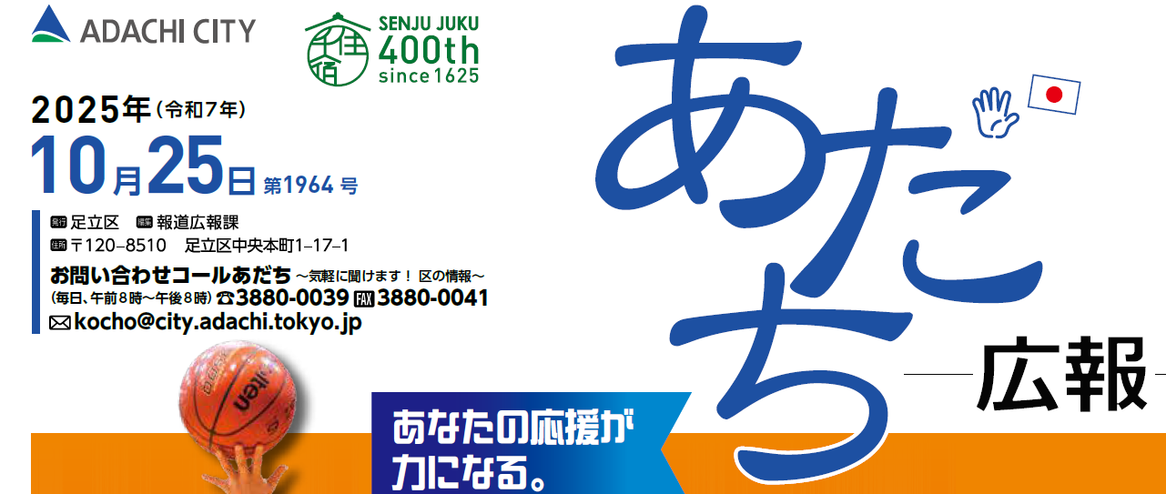 暮らし・まちづくり ■都営住宅(家族・単身者向け)入居者募集 募集案内配布期間:11月4日から12日 ※土曜日・日曜日を除く 配布場所: ・住宅課 ・戸籍住民課 ・区民事務所(中央本町を除く) ※なくなり次第配布終了。入居資格など、くわしくは募集案内または区のホームページをご覧ください。 問い合わせ先:お問い合わせコールあだち(毎日、午前8時から午後8時) 【電話】03-3880-0039 ■「足立区プレミアム商品券...