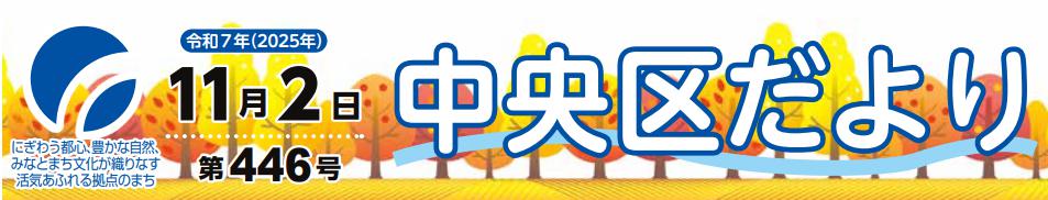 その他のお知らせ(中央区役所だより (令和7年11月2日)) ※電話番号は市外局番(025)を省略しています。 ※掲載の二次元コードを読み取ることができない人は各イベント主催者へお問い合わせください。 ■中央区役所だより 令和7年(2025年) 11月2日 第446号 発行:新潟市 中央区役所 地域課 〒951-8553 新潟市中央区西堀通6番町866番地 【電話】025-223-7035