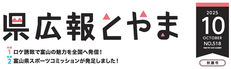 その他のお知らせ(県広報とやま 2025年10月号) ■県のテレビ番組 ▽[こんにちは富山県です] 第2・3・4土曜 午前9:30~9:45 ▽[とやまを学ブー 教えて!ケロ先生] 毎週水曜 午後10:57~11:00 ▽[寿司といえば、富山story] 第2、4日曜 午後9:54~10:00 ■富山県 x PoliPoliGov(ポリポリガブ) オンラインで気軽に富山県へアイデアをお聞かせください! ▽募集中テーマ Q.若者に県政を「とどける」ため...
