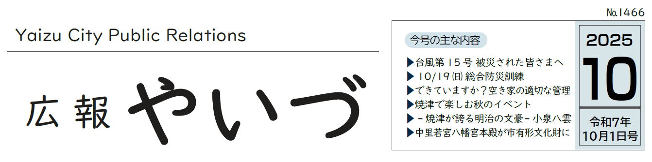 ‐焼津が誇る明治の文豪‐小泉八雲 『怪談』などの作品で知られる明治の文豪・小泉八雲(ラフカディオ・ハーン)は焼津と縁のある人物です。 NHKで放送されている、連続テレビ小説「ばけばけ」は八雲の妻・セツをモデルにした物語です。 放送を機に、市内で盛り上がる八雲に関するさまざまな企画などを紹介します。 問合せ:焼津小泉八雲記念館(三ケ名1550 焼津市文化センター内) 【電話】620-0022 ■広がる八雲ブーム ▼八雲グッズや料理が...