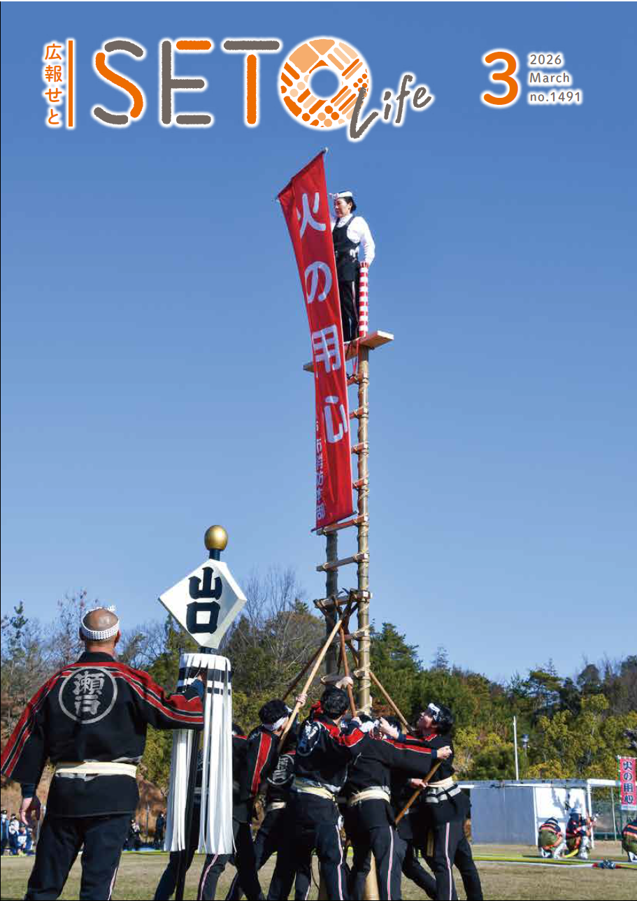 今月の表紙 1月18日(日)に市の安心安全と無火災の願いを込めて「令和8年瀬戸市消防出初・観閲式」が開催されました。青空の下、芝生広場でははしご乗り演技披露、一斉放水、消防ひろばが開催され、多くの親子連れで賑わっていました。