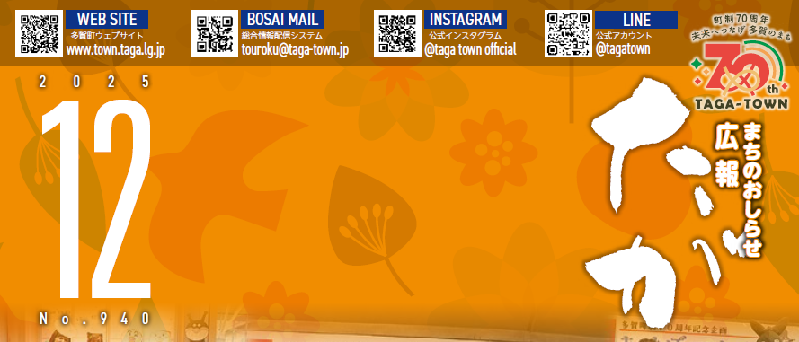 「令和8年多賀町はたちの集い」のお知らせ はたちを迎える方々が立派な社会人として飛躍されることをお祝いする「多賀町はたちの集い」を開催します。 日時:令和8年1月11日(日) ・受付 10:00~ ・第1部 式典の部 10:30~ ・第2部 懇談会の部 11:30~ 会場:多賀町中央公民館「多賀結いの森」(多賀町久徳160-2)ささゆりホール 対象:平成17年4月2日から平成18年4月1日生まれの方 保護者の観覧:第1部(式典の部)、第2...